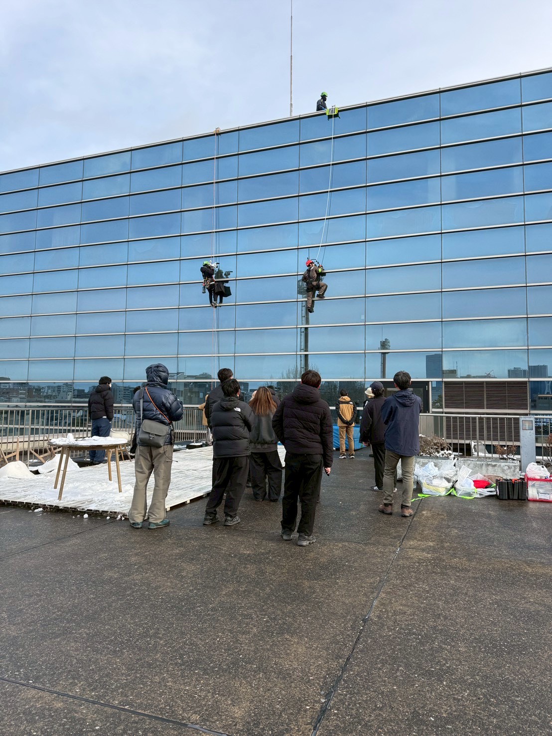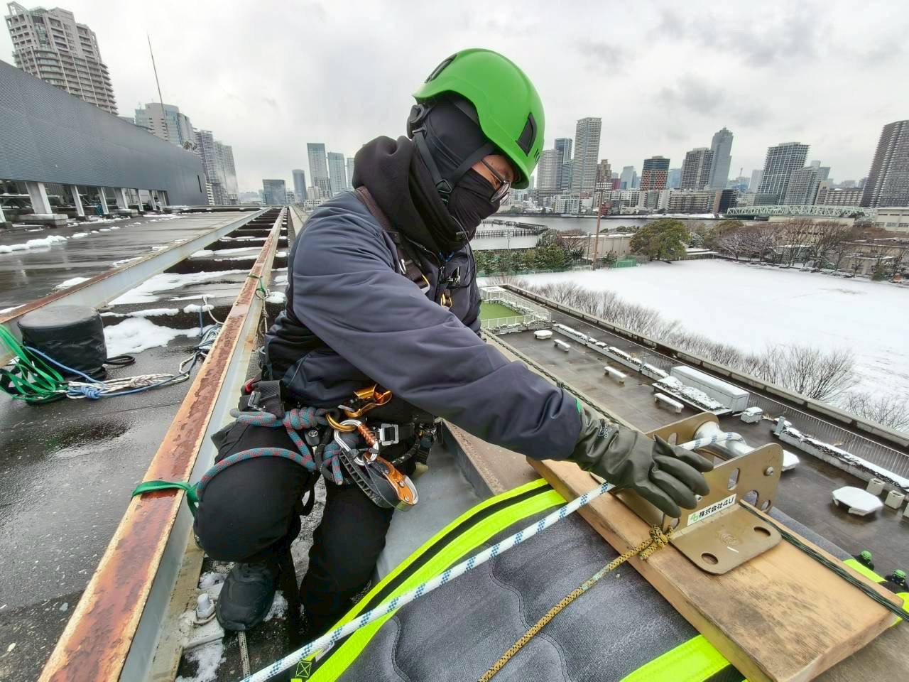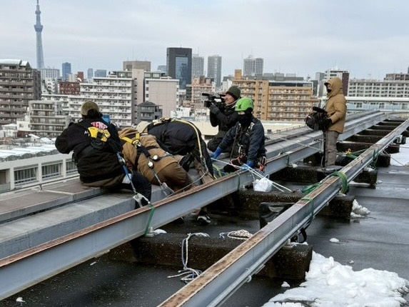 - ビル外壁・屋上・高所空間での撮影用ロープ設置